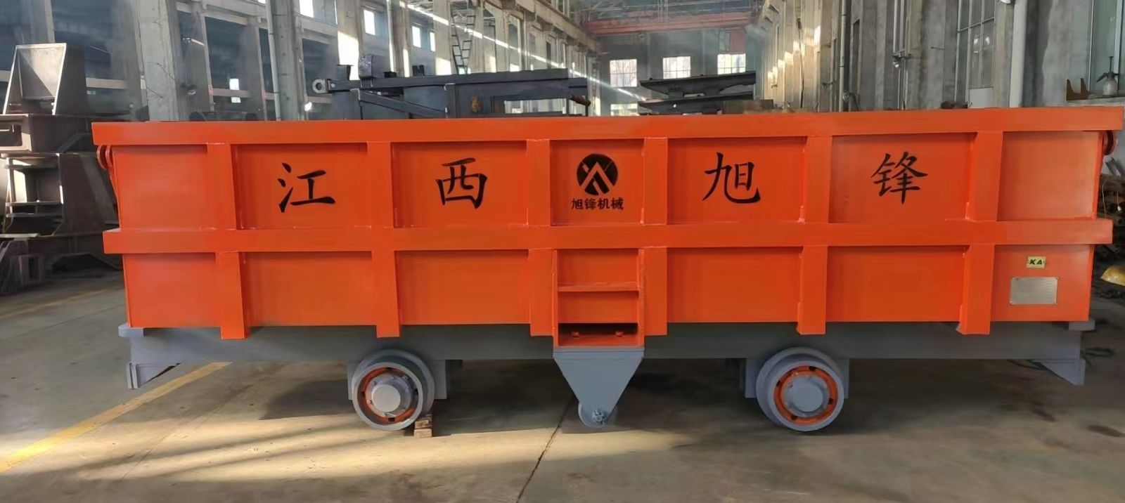 侧卸式矿车是一种高效、自卸载的运转设备,本身无能力,需与牵引机车配套使用的矿山装卸设备。车箱的一侧或两侧可以打开,借助装在卸矿点上的卸矿曲轨使矿车倾斜,拉杆打开侧门卸矿的。